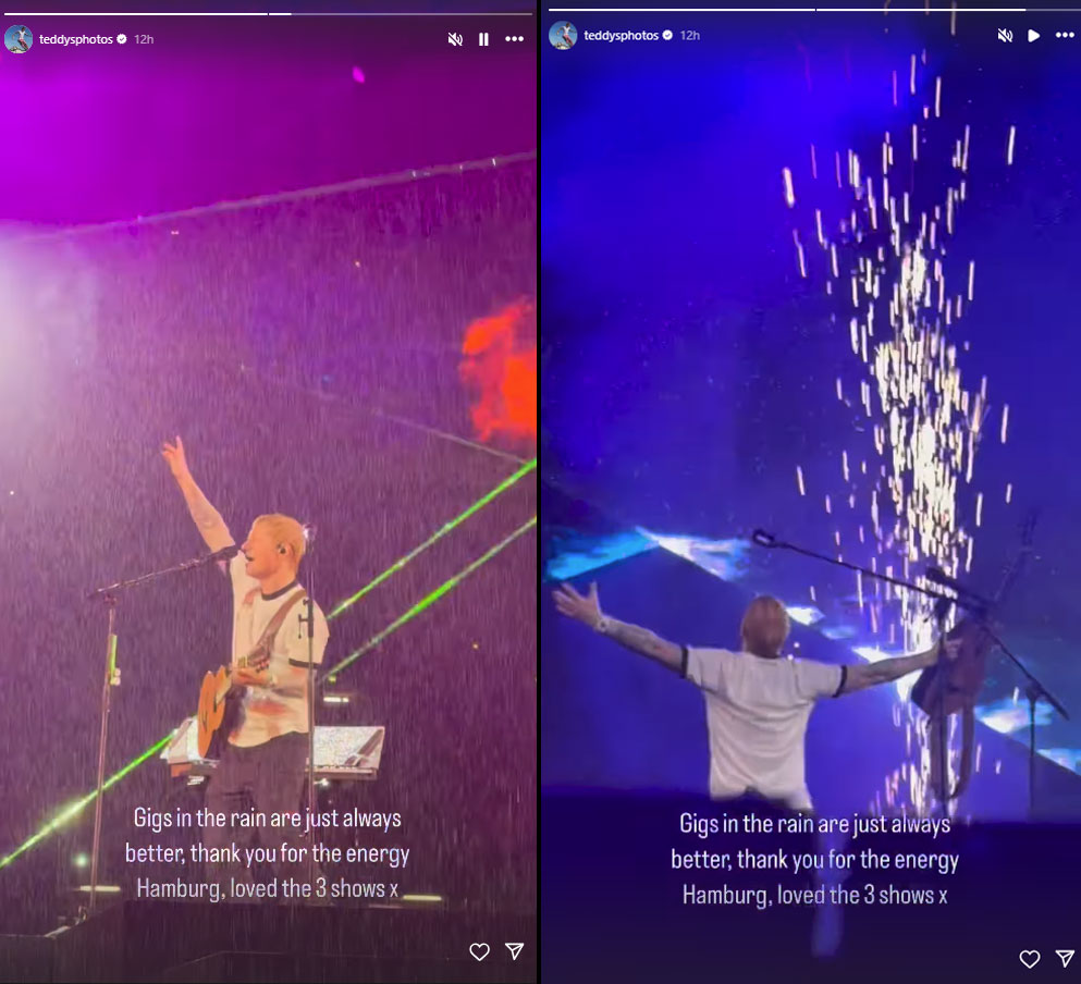 The four time Grammy Award winner shared the glimpse of the magical moment on his Instagram Stories with a caption that read, "Gig in the rain are just always better, thank you for the energy Hamburg. Loved the 3 shows x."