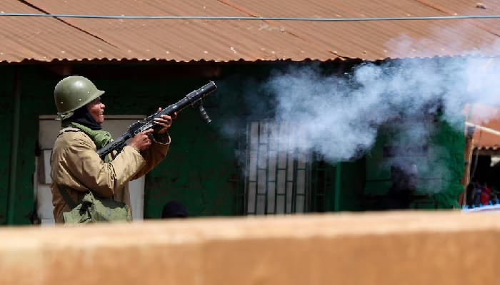 A Reuters reporter saw police fire at advancing protesters in the Nairobi suburb of Kangemi, with one man later lying motionless on the road with a bleeding wound.