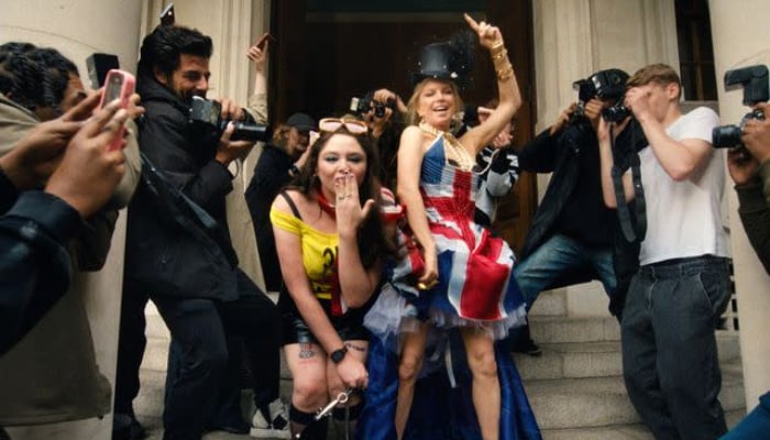 “Now you see why we didn’t shoot here originally,” she jokes, before a flashback to her original video plays, the one famously filmed at London’s more iconic Tower Bridge, which still makes appearances in the background of this revamped version.