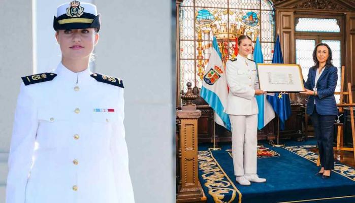 The Princess of Asturias received the title from Mayoress María Pilar Ramallo Vázquez of Marín. The honour recognises her connection to the town, where she underwent military training at the Naval Military School.