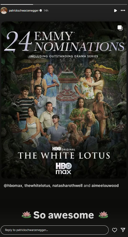 Patrick Schwarzenegger marked The White Lotus Season 3’s big win despite being left out of the 2025 Emmys.