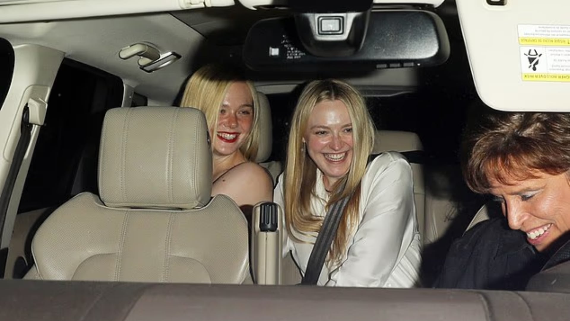 The fanning sisters seemed to be having a blast of a day with Elle and Dakota laughing and giggling while settling in a taxi outside the venue.