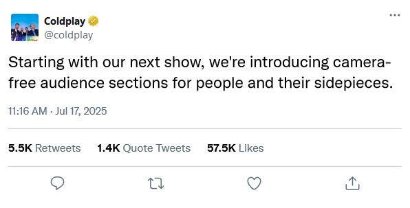 “No, this screenshot is fabricated,” it stated. “Coldplay has not announced camera-free sections for 'sidepieces’ — no such post exists on their official X account or in recent news. Likely a joke.”