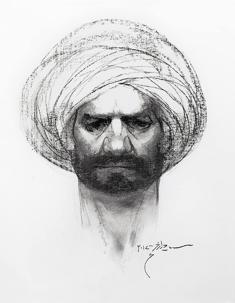 During a conversation, Saeed Akhtar said that he loves to exaggerate the contours of the body and facial expression of his subject and embellish them with more interesting details.