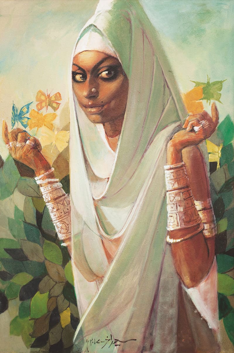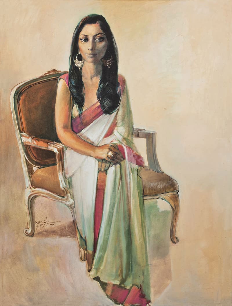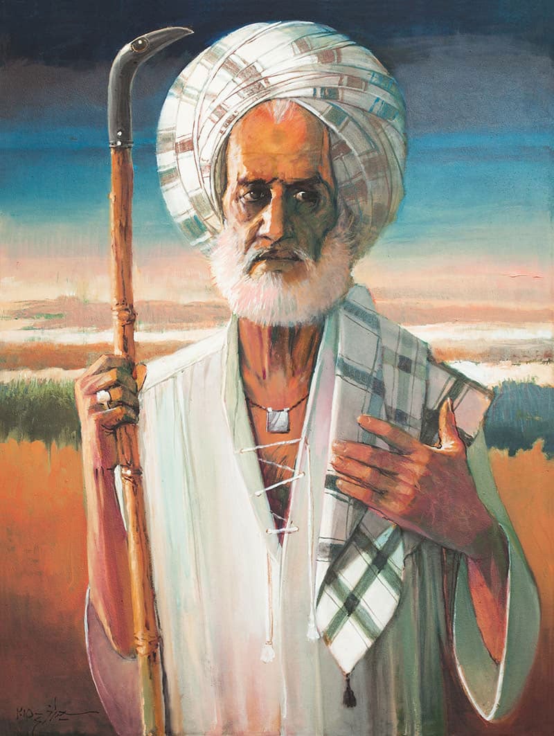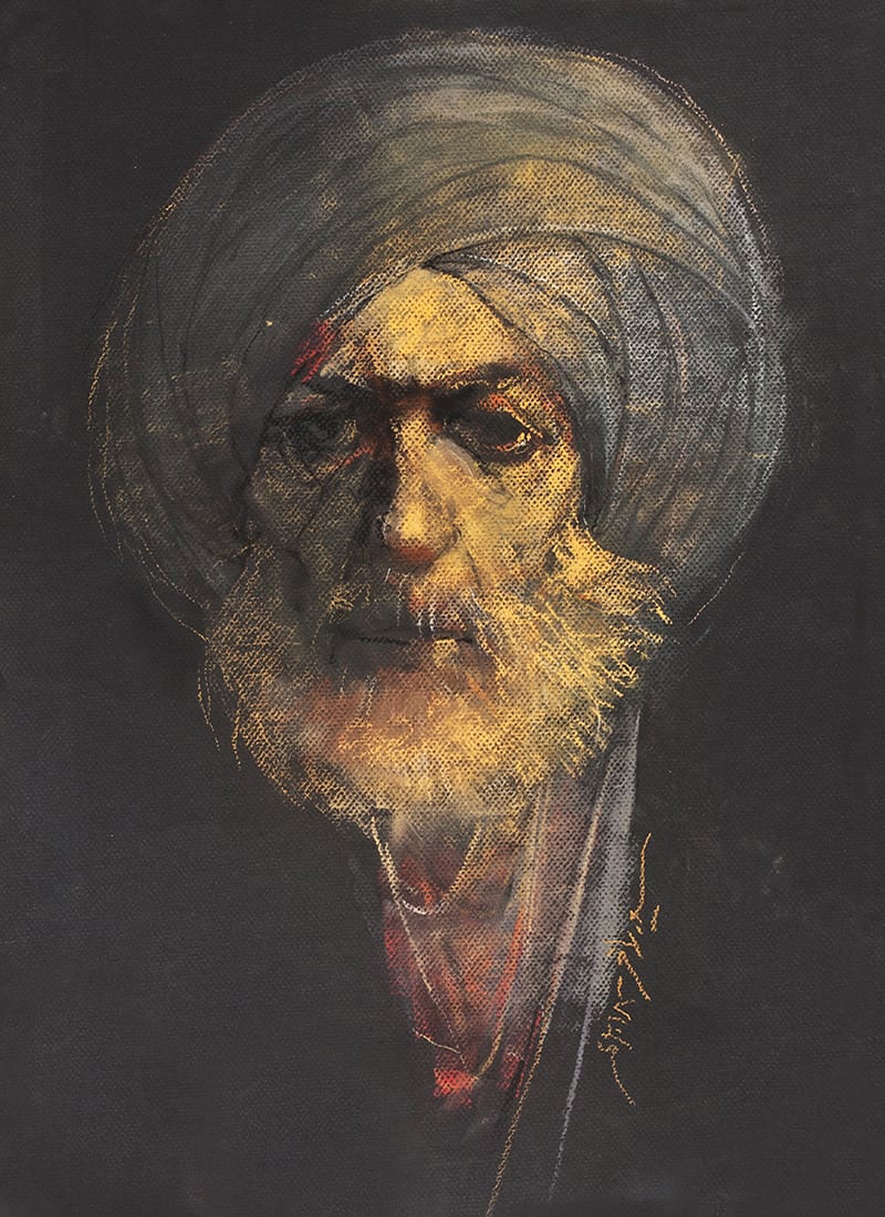The energy with which his hand flows can be felt easily by viewing his artworks. The ordinary faces of men and women in his artworks are full of expressions. Smiling, alluring portraits of young women with high-bridged noses, big bright eyes and heavy ornaments reveal a new world of beauty but mostly in deep thought, making it a serious affair. Among the artworks one sees some turban wearing men with the stories of life on their faces.