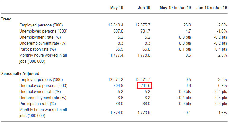 But the most recent ABS’ employment summary for Australia shows its seasonally-adjusted unemployment figure for June this year is 711,500.