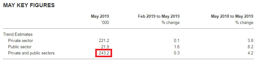 The misleading post also claims the ABS says there are 243,200 “jobs vacant”. The Bureau did give this number -- but for May this year, as the screenshot from its page below shows: