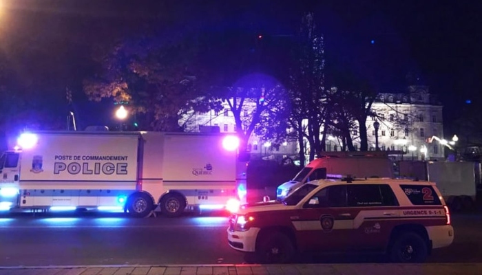 The CTV network broadcast a video apparently showing the arrest of the suspect, who seemed to stab himself in the leg before collapsing and being detained by several police officers.