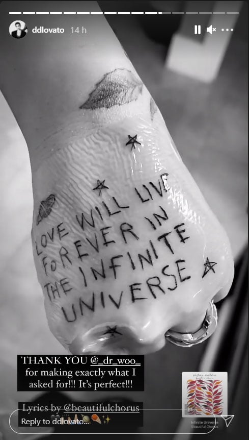 Demi Lovato shows off her brand new song lyric tattoo