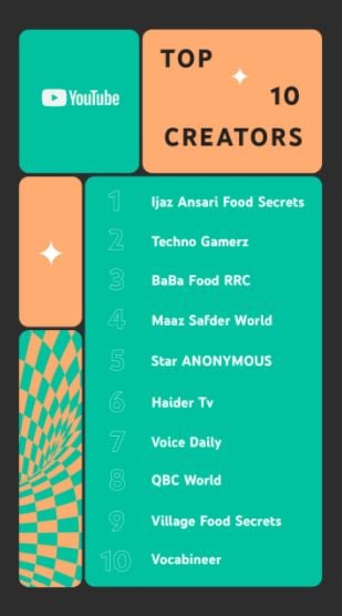 Master Chef Ijaz Ansari Food Secrets is Pakistan’s top creator on YouTube in 2021, while popular mobile gaming channel Techno Gamerz remains ever-so popular as a YouTube creator in Pakistan with 22.2M subscribers. The channel claimed the second spot. Another cooking channel Baba Food RRC by Chef Rizwan Chaudhry with 2.51M subscribers ranked third in Top creators list. Here’s the full list of top 10 YouTube creators in Pakistan.