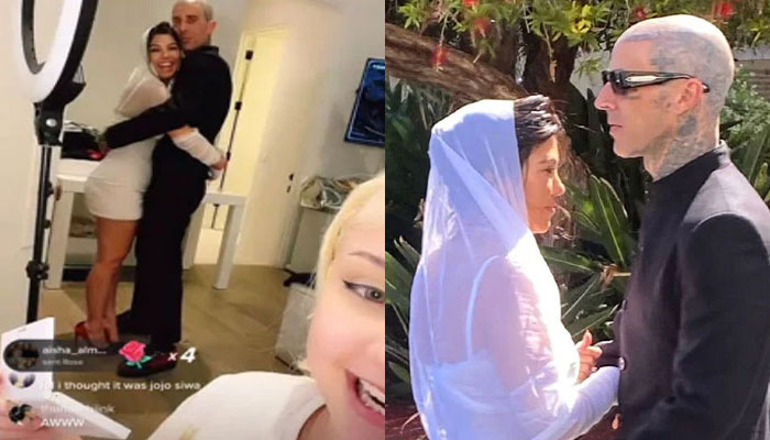Newlywed Kourtney Kardashian, Travis Barker crash Alabama Barker's live video