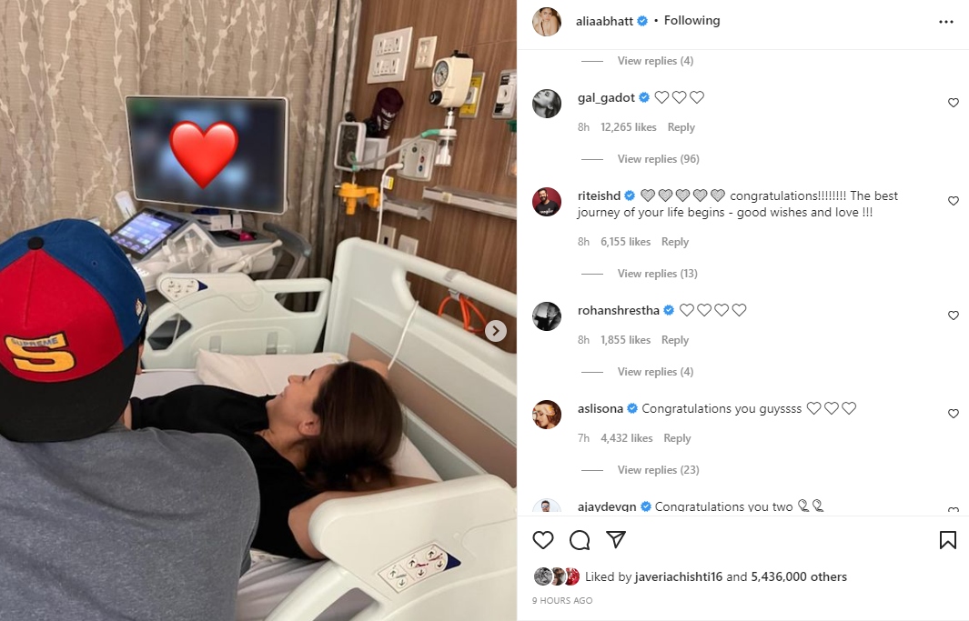 Reacting to Alia’s post, the Red Notice star joined several celebrities who dropped congratulatory messages for the couple. Sending her love for the family, Gadot dropped red heart emojis.