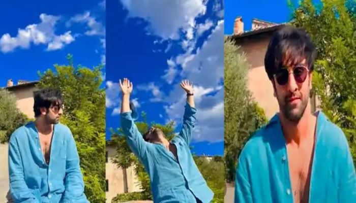 The actress shared a video where Ranbir Kapoor was seen donning an all-blue look with a blue shirt, denim pants, and black sunglasses under the beautiful blue skies.