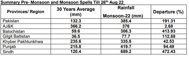 The NDMA shared that Pakistan's 30-year average showed that the country has received 134mm of rain and this year it received 388.7mm of rain. 190.07% more than the average.