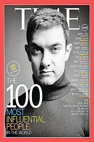 Khan featured in the Asian edition of the magazine that labeled him the ‘first superstar activist’ who is trying to fight the evils of the Indian society. The headline read ‘Khan’s Quest’ which had a question: “He’s breaking the Bollywood mold by tackling India’s Social evils. Can one actor change a nation?” In 2013, he appeared on the cover again but this time as one of the 100 most influential people.