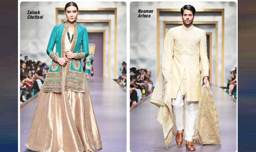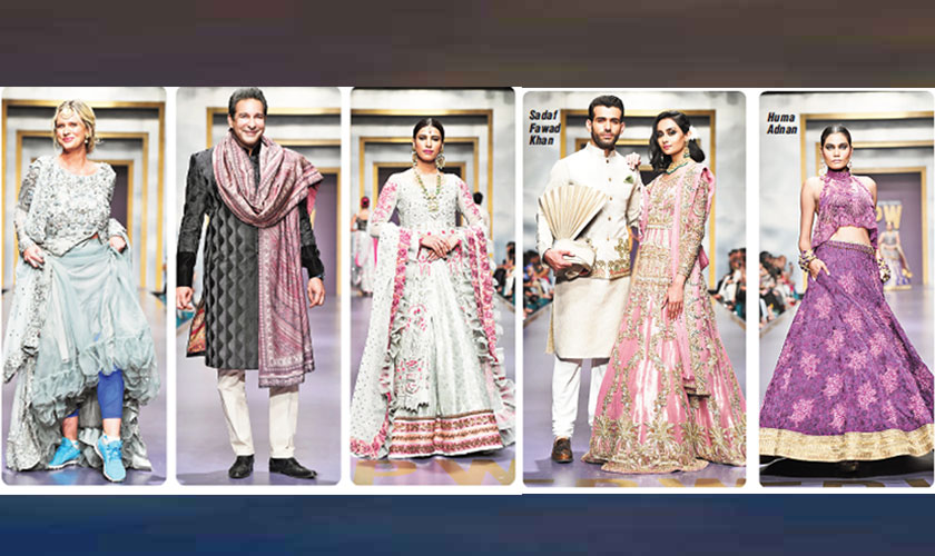 Karachi: The final day of fashion week was high on energy, not because of the designers on the lineup, but because of the celebrity sightings that people were anticipating. There were murmurs of Mawra Hocane walking with Fahad Mustafa for Zainab Chottani; the fact that Faryal Mehmood opened for the same designer was a small bonus. Feroze Khan and Hania Aamir, appearing onscreen as a couple for upcoming drama serial Bezubaan, walked for Sadaf Fawad Khan while Fawad Khan – the country’s biggest superstar who is anticipated to be back on screens next year – sat in her front row next to Asim Azhar. Shaniera Akram made a high octane appearance for Saba Asad while Wasim Akram walked for Shiza Hassan. Several other starlets walked for almost all designers, some recognizable and others being just as underwhelming as the collections they were promoting.