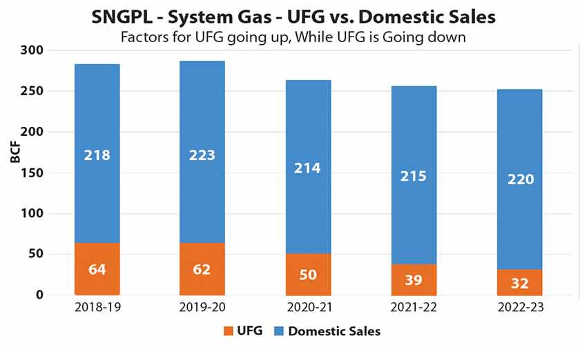Numerous challenges are faced in this supplying Piped Natural Gas (PNG) to domestic sector which includes limited carrying capacity, gap between connected and contractual load, ageing infrastructure, unplanned spaghetti network, leakages, measurement and billing errors coupled with the practices of gas load shedding and fluctuating demand/load profiles—ranging from daily and weekly variations, notably on Fridays, to monthly and seasonal shifts—further aggravating the gas losses. Reported reduction in SNGPL’s UFG appears inconsistent with decreasing Bulk to Retail ratio, raising questions about the accuracy of the figures, ironically, SNGPL’s reported UFG levels have reduced by 50%. Needless to say, this needs to be audited and verified by independent consultants.