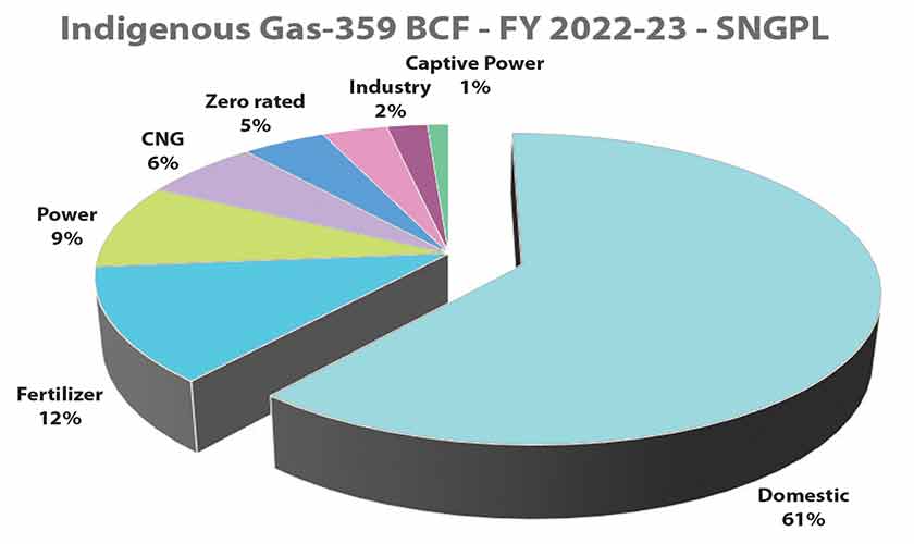 There is lack of transparency in gas pricing mechanisms, political reluctance to implement reforms, and regulatory weaknesses have resulted in revenue, gas development surcharge shortfalls and a substantial circular debt problem in the gas sector. Consumption in Households exceeds 1 billion cubic feet per day (bcfd) in both Suis when considering high Unaccounted-for Gas (UFG) in the feeder main of Gas Utilities. Domestic consumption in the SNGPL System Gas consumes a staggering 61% of the annual intake at under $1.5/MMBtu, requiring diversion of spot LNG cargoes in winters due to load profiling. It is an untargeted subsidy that primarily benefits the affluent urban population, which constitutes 80% of the demand and incurs a significantly higher cost of service. Expensive spot LNG purchases raise the weighted average price of LNG, a burden yet again borne by the industry.