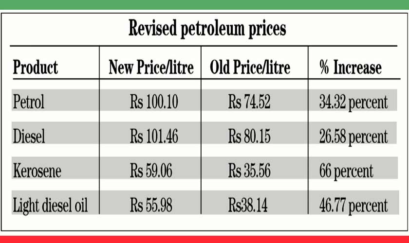 Now the latest estimates suggest that the Brent Oil prices would hover around $ 47 per barrel, so the prices in domestic market would remain in the existing range. Prices surged up to 66 percent and the government increased petrol prices from existing Rs74.52 to Rs100.10 per litre, depicting an increase of 34.32 percent. Diesel prices increased to Rs101.46 from current Rs80.15 with an increase of 26.58 percent. Kerosene price has been jacked up by 66 percent to Rs59.06 per litre from the current Rs35.56 per litre. Light diesel oil (LDO) prices were also raised by 46.77 percent to Rs55.98 per litre from Rs38.14 per litre.