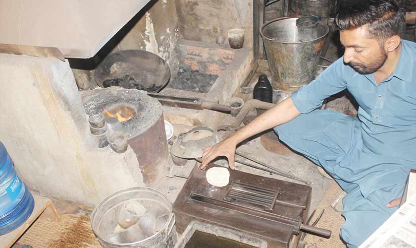 Showing a gold button worth Rs600,000, refiner Zahir Butt said he earned only Rs50 for smelting it. “It is bare minimum, enough to keep the refinery afloat,” he shared, while poking the glowing embers in the small furnace.