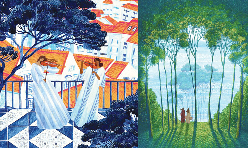 Singing Holidays is a unique travel experience combining music and cultural immersion, often in stunning destinations like Tuscany or Seville. Swathed in patterned coats, overlooking expansive vistas, or reveling the joys of solitude, the characters in Rosanna Tasker’s illustrations delight in simple pleasures.
