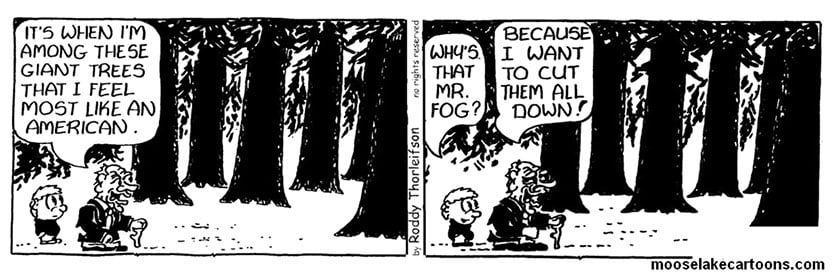 A scrawny little guy walks into the office of a lumber camp looking for a job. The boss looks him over and says, "Get the hell out of here. Our axes weigh more than you do." The guy begs and pleads with the boss and says he can show him he's worth hiring.