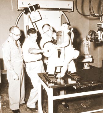 Designed for children, with the intention of keeping them seated and immobile during a chest X-ray (1957)