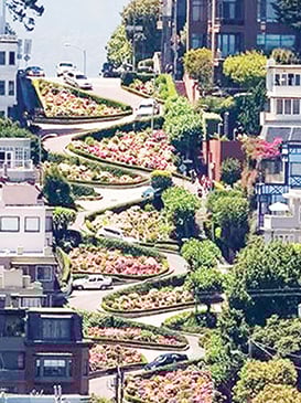 Surrounded by Russian Hill mansions and perfectly manicured landscaping and flowers, it is also one of the city’s most scenic streets.