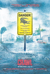 Crawl (starring Kaya Scodelario, Barry Pepper) – horror thriller; stuck in a crawlspace basement during a fierce hurricane, a father (Pepper) and daughter (Scodelario) battle rising waters and alligators as they try to escape.