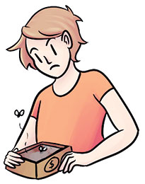 A college student who opens his wallet and expects to find money.