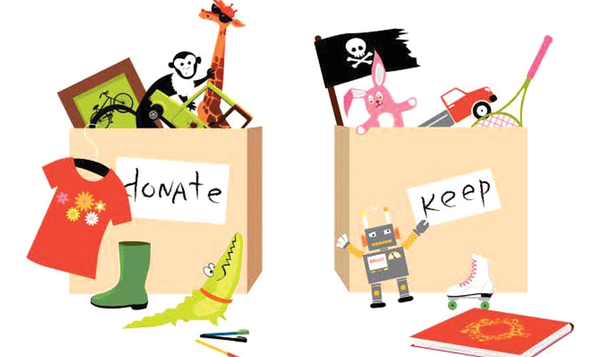 Before you start, create five baskets: one for stuff that needs to be put away, one for items that need to be recycled, one for things that need to be repaired or cleaned, one for trash and one for donations. Then tackle each room part by part, making sure you’ve fully completed one area before moving on to the next.