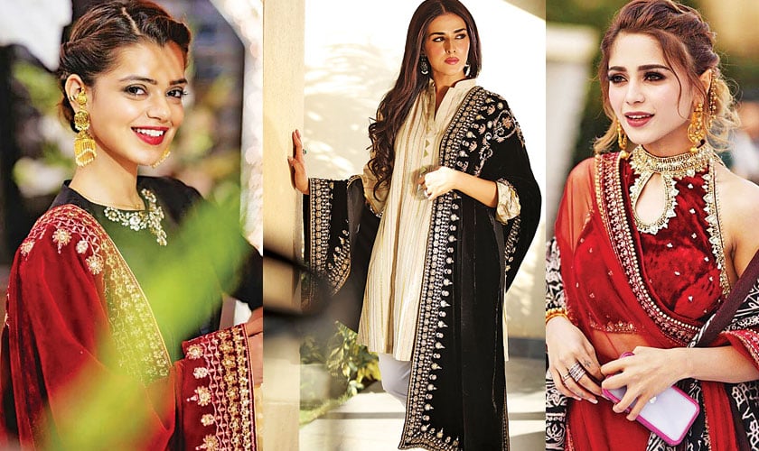 Velvet is a classic fabric that instantly gives off an air of elegance and can dress up even the simplest of outfits. Embroidered velvet shawls are the trend to follow this season and we don’t think we need to prove this, as it goes without saying! So many couturiers included this sophisticated accessory to their apparels this season. You all must have this winter style staple even being under the spotlight at weddings too. Drape it around your shoulders, snake it through your arms or wrap it around yourself to safeguard yourself from the chilly weather. If you do not feel like going overboard, then wear an embroidered velvet shawl with a plain dress and you will still look extremely elegant. Brides are also wearing velvet shawls along with a second dupatta. You’ll be surprised at how a simple shawl can change your whole look and add grace to your persona.