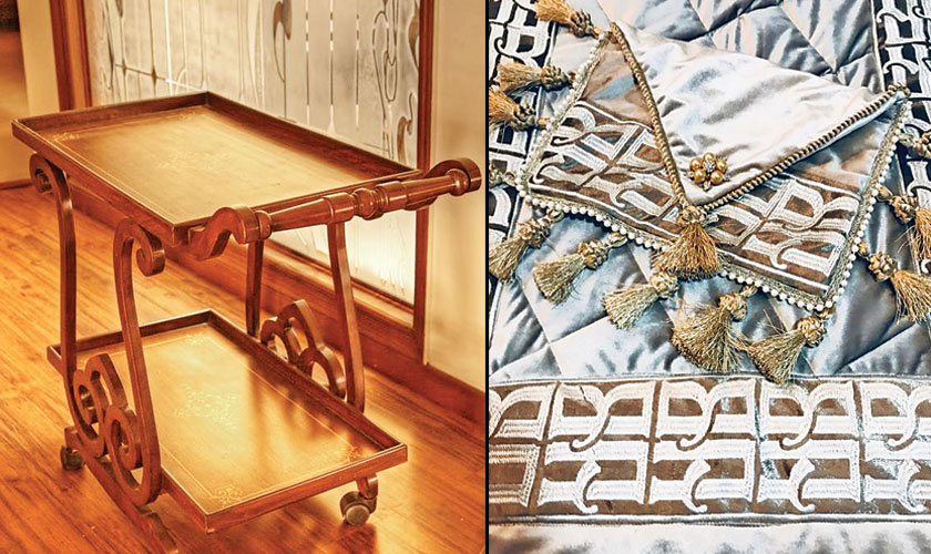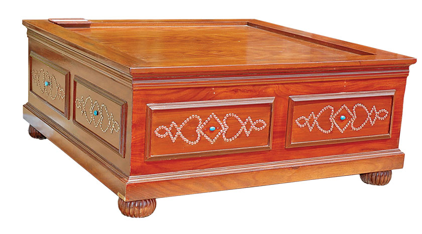 Beena Ameen: Since my childhood, I had this love for furniture and décor. I used to spend hours in furniture and hardware stores. One of my first productions was a coffee table I designed, which was huge in size and encrusted with thumb tags and gems. I was the first one in Pakistan to use thumb tags and semi-precious gems on wood. I used Firoza and emeralds on this piece in variations.