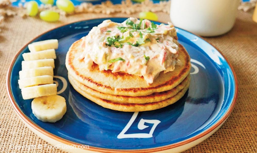 * Serve oats pancakes with yogurt and vegetable sauce and garnish with fresh coriander!