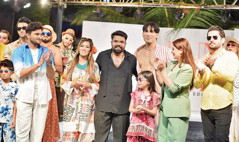Opening the event, Zubair Shah made an impression with his resort-wear collection, which was a fresh take on beach and summer fashion. The collection included sarongs, sun hats, and lightweight, breezy outfits in cool tones, perfect for a tropical getaway. The fabrics were chosen for their comfort, while the prints gave each piece a unique touch. His showstopper, TV actress Sarah Omair, walked in a mint-green, lapel-free suit, combining both elegance and a modern, chic vibe.