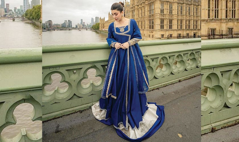 Leaning towards a more desi look, Urwa Hocane recently wore this royal blue Kiran Raza anarkali and it is what wedding dreams are made of. Wear it for your own wedding events or as a show-stopper guest at a formal affair. Style it with pearl jewellery and traditional jhumkas, and you’ll feel as regal as Urwa looks.