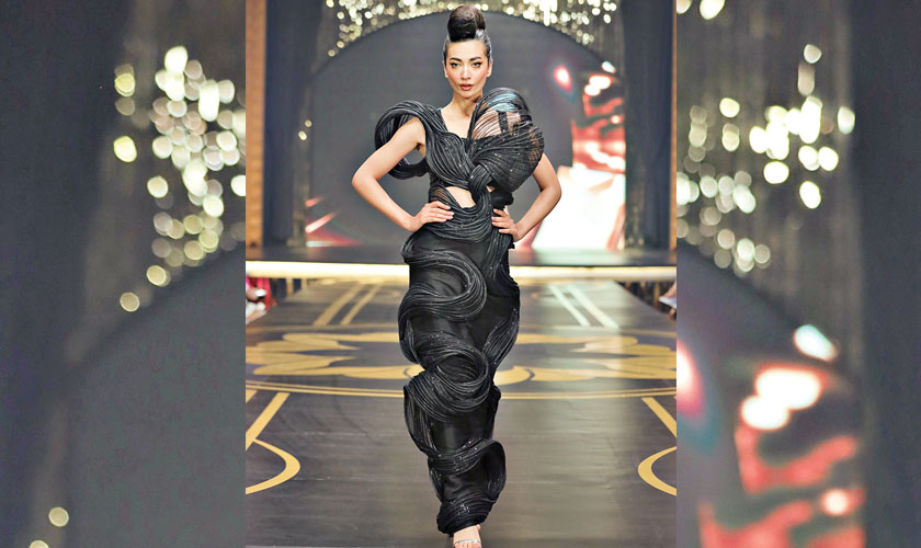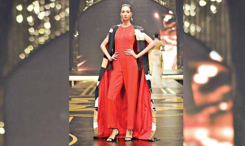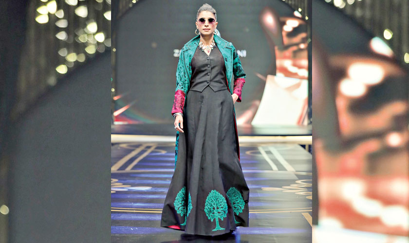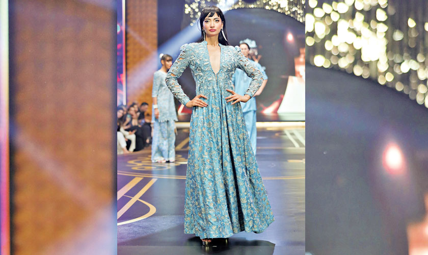 Zainab Chottani brought a fresh perspective to Kantha craft with her collection, modernising traditional stitching into art. Using vibrant colours and fusion silhouettes, she highlighted her commitment to heritage, while the Tree of Life motif added symbolic depth, blending festivity with timeless appeal.