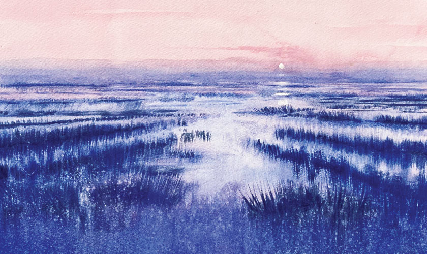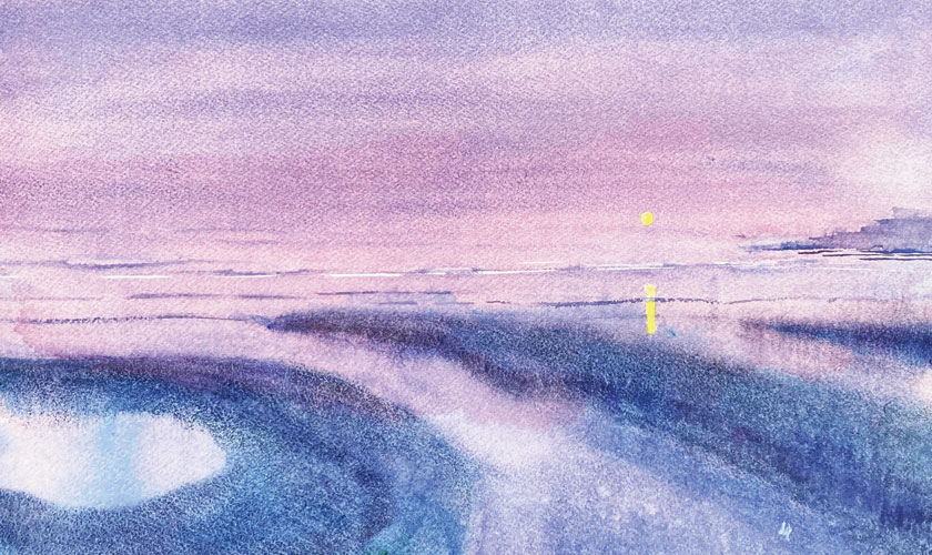 One of the standout pieces, The Bride of Evening, feels like a fleeting moment frozen in time. The washes of dusk colours cascade down the sheet like whispers of a story untold, while the delicate interplay of light and shadow transforms the ordinary into the extraordinary.