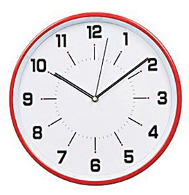 It is a must have accessory for office desk, study table, computer desk and side tables. The typical two-coloured tabletop clock contains the black dial with white numerals, white hour and minutes hands and a flat glass cover. It is surrounded by a yellow, red and blue rim with black plastic case.