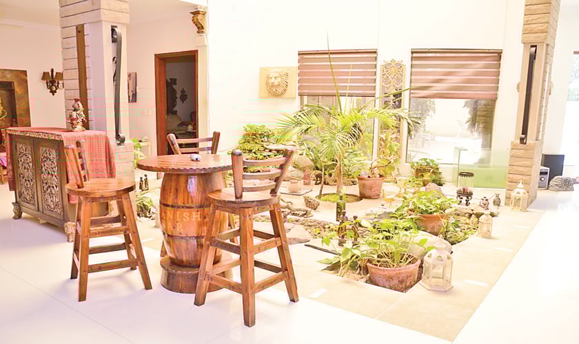 Huma likes to keep her lawn in immaculate shape. "Since we entertain a lot, I would like my guests to have a good impression of outdoors too. Our lawn is maintained by my trained staff and I over look on weekends with Adnan. And yes, I am also doing the exterior of the house with a local artist. It's still in the planning stages though," she informs.
