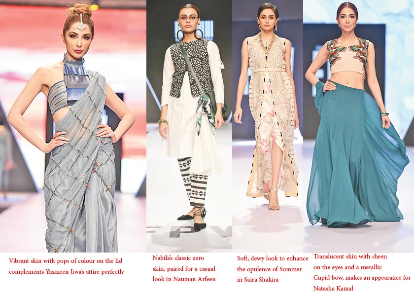 Keeping the ala mode collections in mind, the makeup team worked with relaxed hair, effortless chic with zero makeup dewy skin and glossy kohled eyes. “We used pops of colours like classic reds and neons to complement the various designer collections,” shares Nabila while talking about the look she had opted for her models for the show. Moreover, the dominant look this year was the stylist’s signature look - zero makeup with a dewy and fresh feel to enhance the features.
