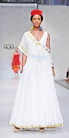 As for her favourite look by the talented stylist Amal, she tells, “My favourite look was definitely with the first piece when the model wore the belt under the Sedreh, a very light Muslin tunic, which is symbolic to what Parsis wear on a daily basis. Yet she was able to pair it up with earrings that symbolised other religions without losing the essence of the Zorastrians.”
