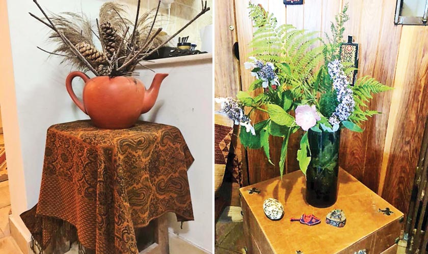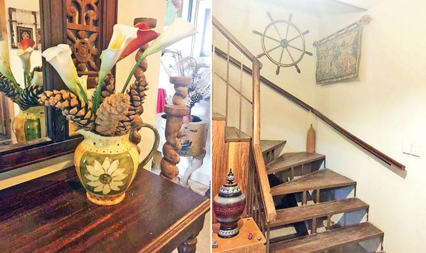 The house is beautified with tasteful accessories and artefacts in every nook and cranny. “The walls have Nireen’s photographs from her exhibition and several other paintings collected over the years. A few are my students’ works. There are handicraft pieces on the walls and tapestry. It is a myriad of decorative features, all diverse. Each one is special as it has a story behind it.