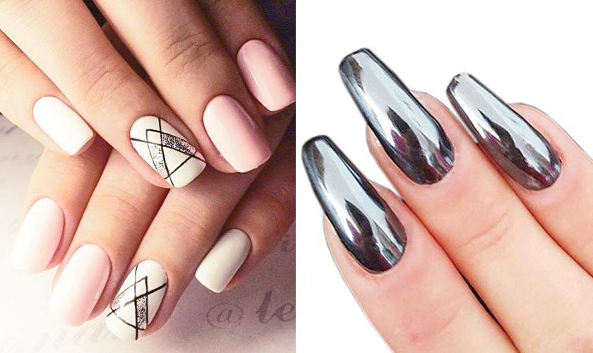 Chrome: Chrome nails are the party nails of this season! Throw away your compact mirror because you’ll now be able to check your lipstick in the reflection of your nails.