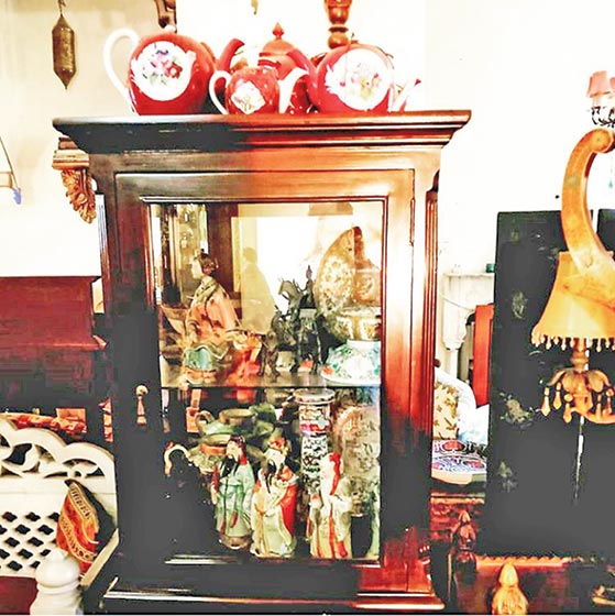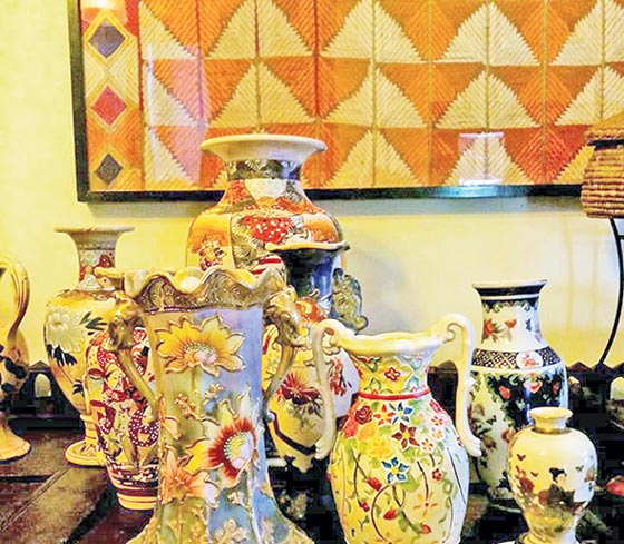 “My collection is very eclectic and always growing. It has antique carpets, darries, shawls, sarees, European patchwork; Japanese crockery, art of Chokin vases, jugs and pitchers, dinner and tea sets; tasteful decorations of great variety; vintage and antique furniture from desert nomads, rural Punjabi villages, Kashmir, Europe and elsewhere; fine art, oil paintings, watercolours, rare prints, batik, tapestry, fine embroidery; wood work, silver and precious metallic decorations, picture frames, lamps from all over the world, and much more,” shares Fauzia.