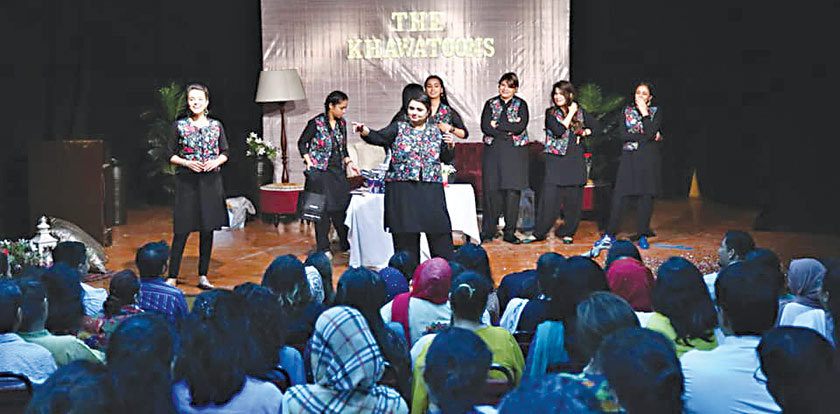 Pursuing comedy as a career and becoming a successful comedian has always been a tough choice for women to make in Pakistan. For that they need to be vocal about issues, bold and witty at the same time. Also to acquire the skill, they must learn the best practices of self-promotion, networking and marketing... and in modern day, a good social media influence too. Interestingly, we do have an example of such women, who are nailing it with their witty humour and amazing comic timings. South Asia’s first all-female comedy group, ‘The Khawatoons’, recently completed three years and celebrated the occasion with an improv show. Featuring nine female comedians, these women have managed to conquer hearts by proving their mettle as exceptional performers.
