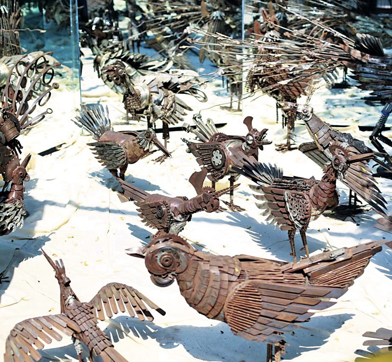 Transforming inorganic materials into interesting pieces of artwork, Imran Hunzai commented on how modernisation was bad for the environment. After the industrial revolution, everything had been replaced with concrete and metal. Common means of transport such as the ‘ghora-gari’ had now been substituted by the rickshaw - one of the leading causes of pollution and global warming.