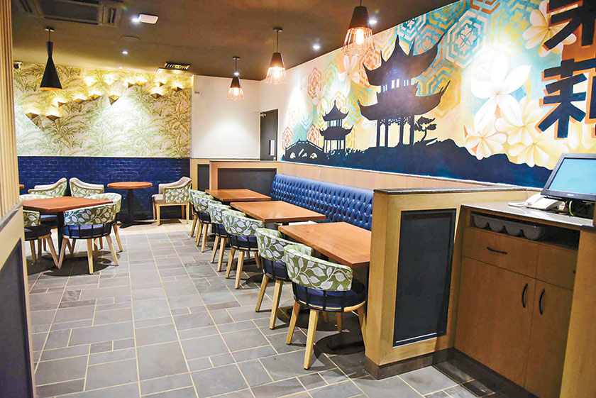 As far as the interior design is concerned, it is designed on contemporary lines with a touch of vintage elements. A lot of blue has been used while doing up the place; even the huge paintings with Chinese scriptures, which adorn the walls of the bistro, have various shades of blue that give a lively feel. As for the flooring simple grey tiles have been used so as to keep the emphasis on the vivid colours of the furniture. Wooden tables and chairs in contrasting hues of green, blue and beige have been placed strategically allowing enough space to move around. Also, comfortable sofa seatings and traditional elements such as Chinese vases give the place an energetic and welcoming vibe.
