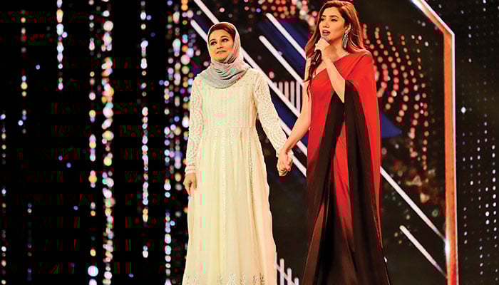 Mira Sethi, in an embellished Wardha Saleem sari, hosted the ceremony, where she was later joined by Sanam Saeed. Sethi was very articulate; her speech resonated well with those in attendance.
