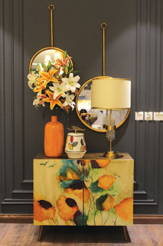 In our recent collection, we have added a hand painted chester. We have an art background so we like to include that into our furniture to make them a statement piece in the room. I have recently placed a 35 feet tall painting in a hallway which has become my signature style,” informs Asma.